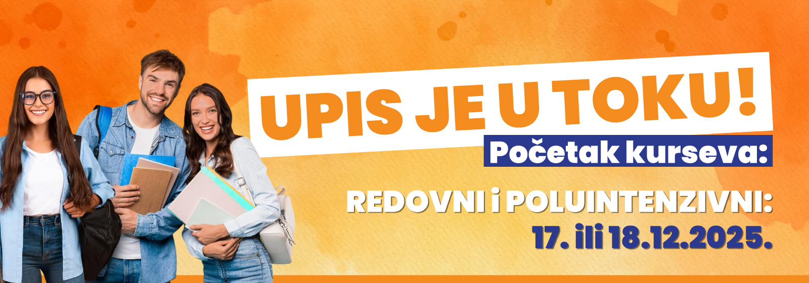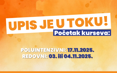 Kurseve organiziramo iz engleskog i njemačkog jezika, italijanskog, turskog, španskog i francuskog jezika, te kurseve iz informatike. Kurseve iz bosanskog jezika organiziramo za strane državljane.